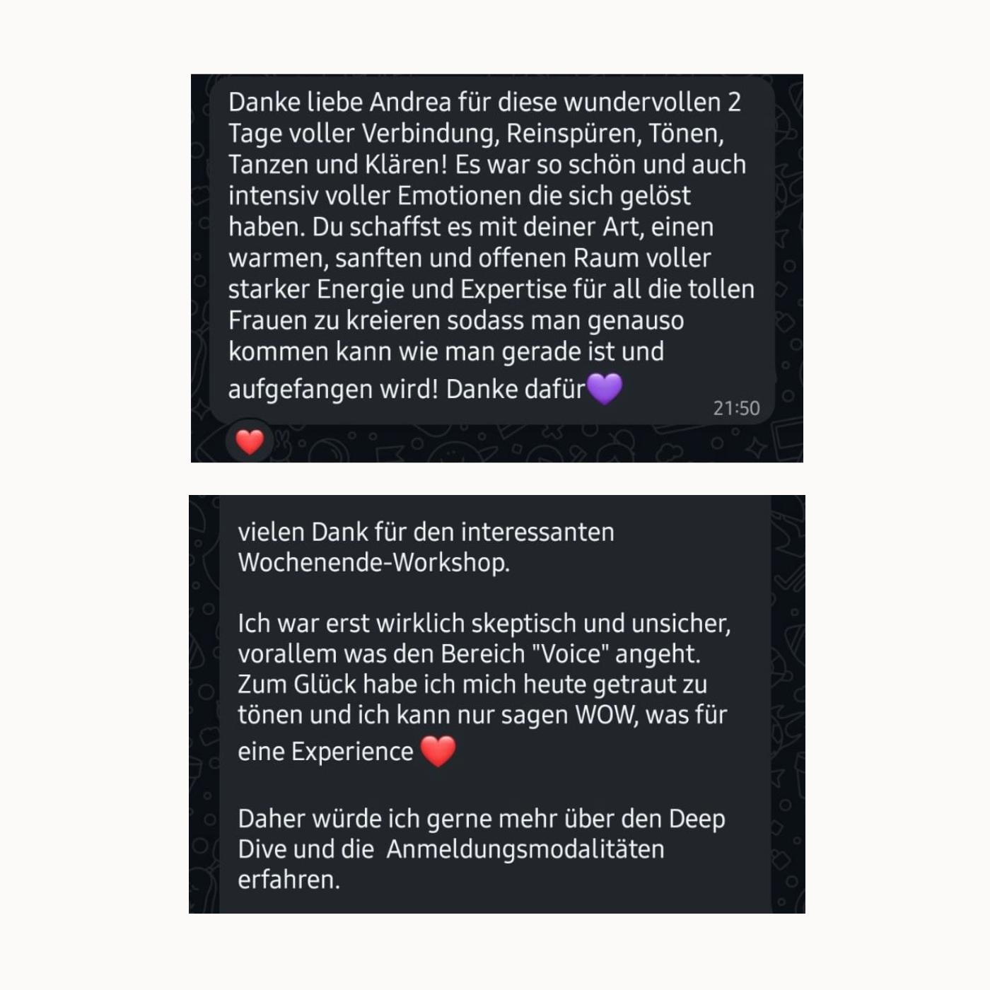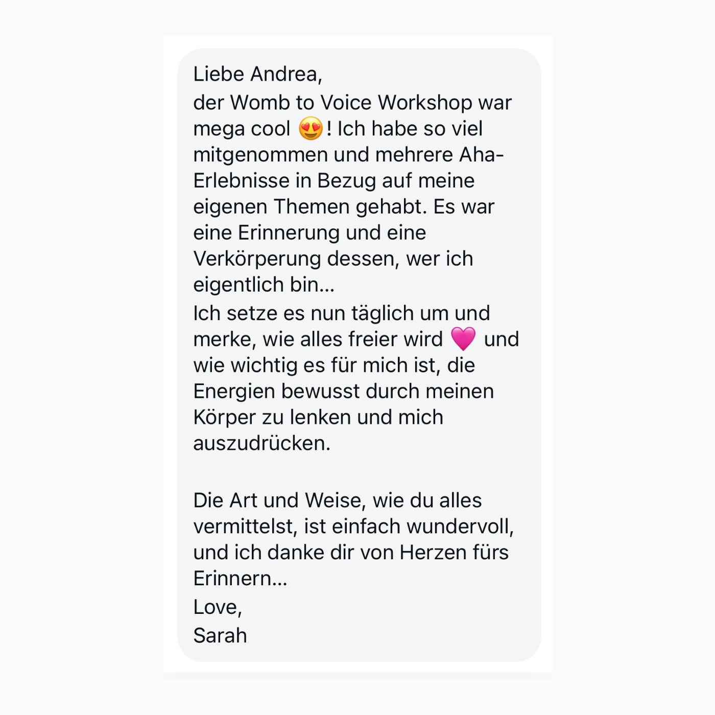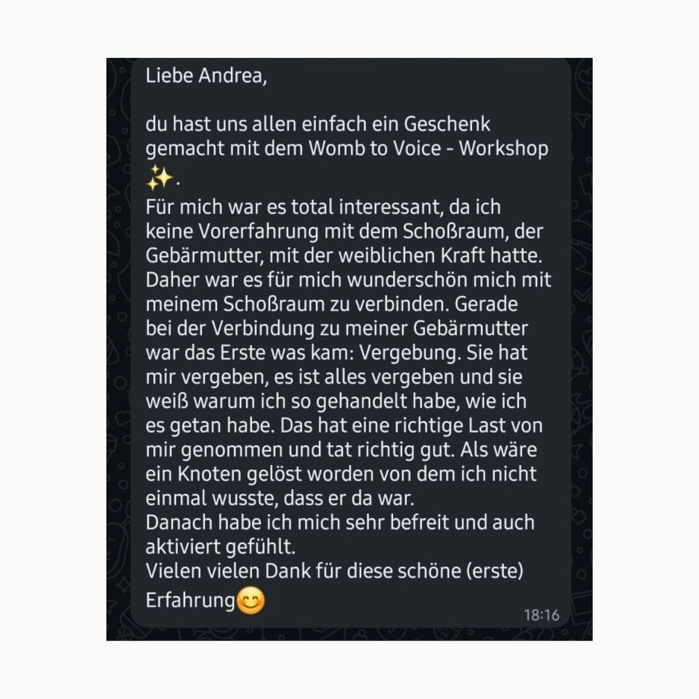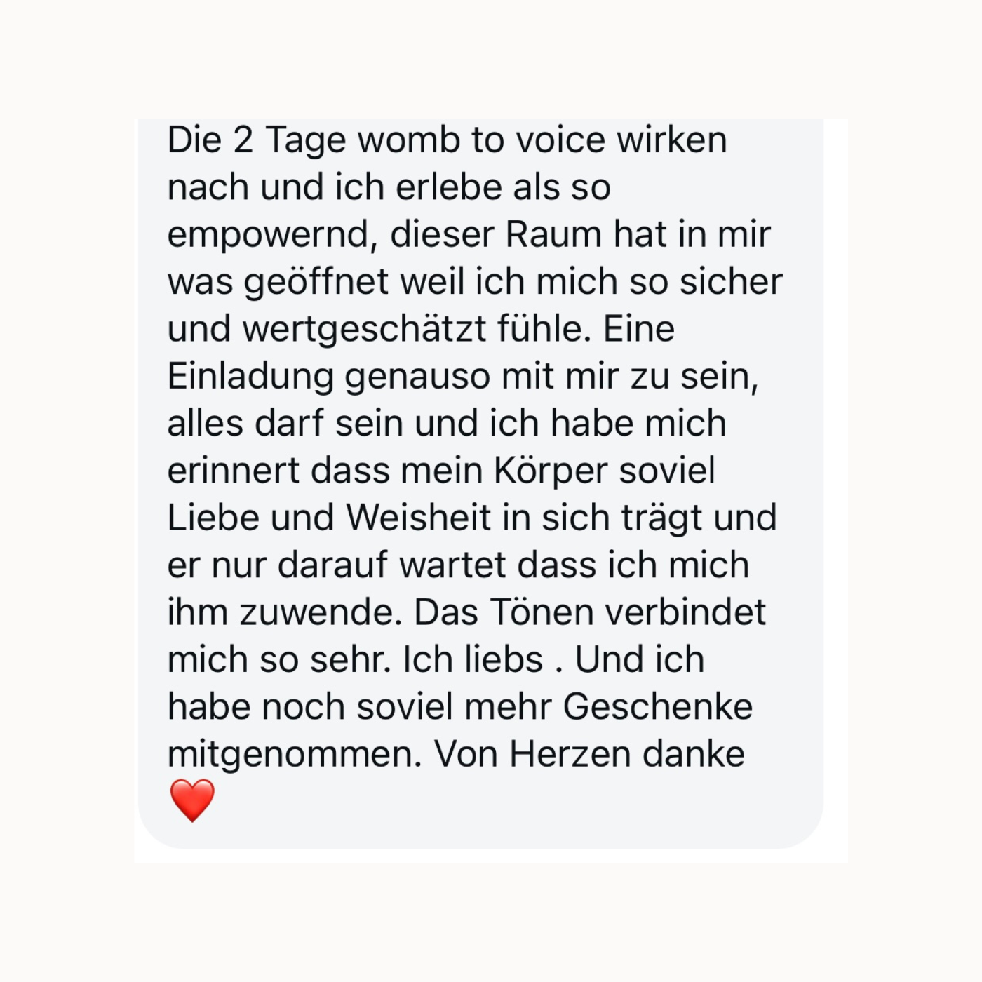 Die zwei Womb to Voice Workshops waren so transformierend, dass viele Frauen nach dauerhaftem Zugriff gefragt haben.